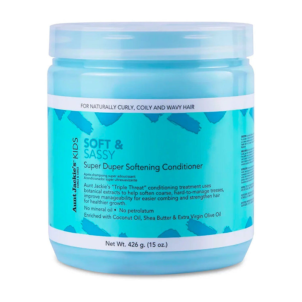 Aunt Jackie's Kids Soft & Sassy Softening Conditioner works quickly to help soften and loosen tight coarse textures.
