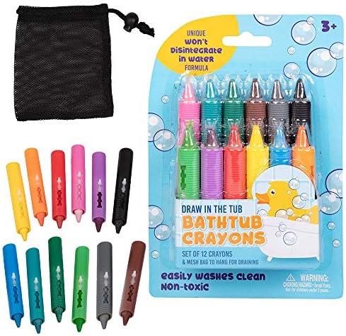 Bath Crayons Super Set - Set of 12 Draw in the Tub Colors with Bathtub Storage Mesh Bag -Non-Toxic, Safe for Children, Won't Disintegrate in Water -Art Project for Kids and Toddlers