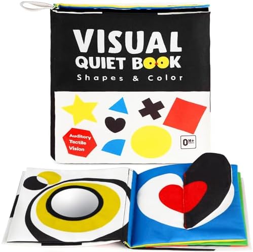 Interesting Cloth Book For Babies: Baby born with blurred vision, and gradually increased on 3 months. High contrast baby books helps stimulate development in the retina and the optic nerve, to train step by step and activate the brain. Our soft book is equipped with 6 high contrast colors, 9 different patterns and 1 baby-safe mirror, all of which will aid visual development in the early stages. Flip little red flag and the big heart shape, makes more fun for baby.