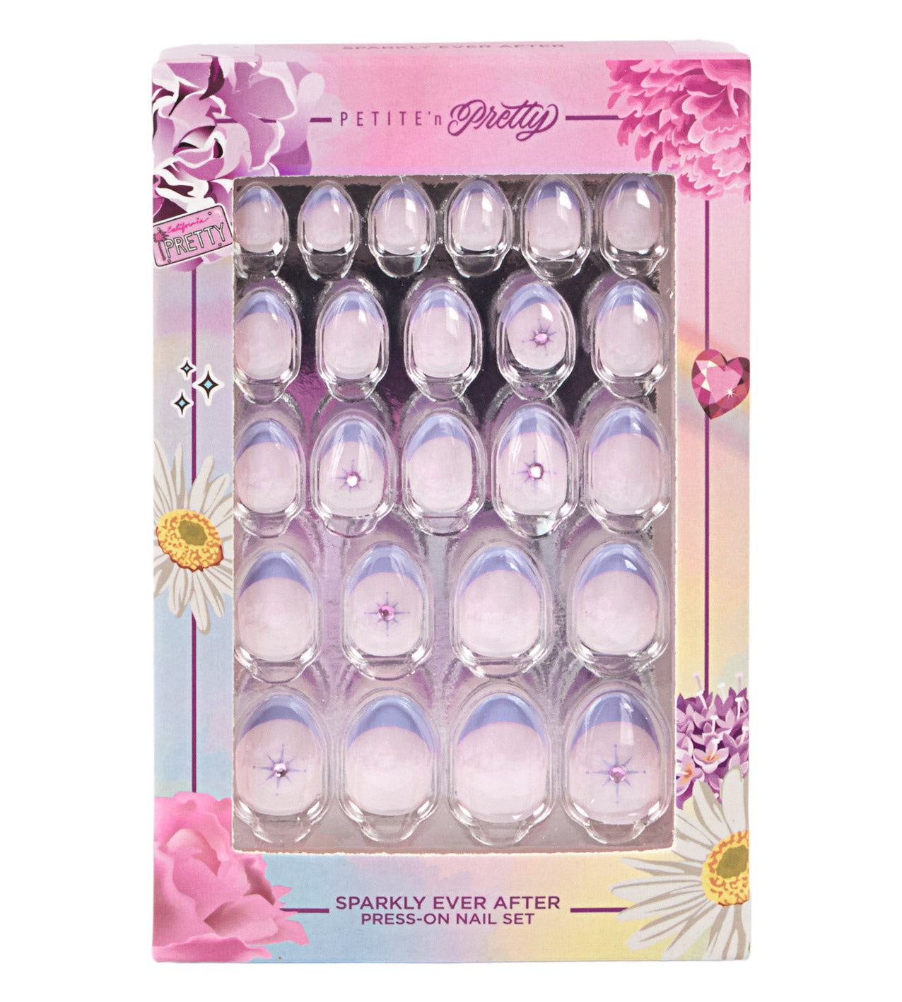 Create the manicure of your fantasies with this effortless press-on nail set. Each kit includes 24 nails to find your perfect size, in whimsical lavender tip with gem accents to complement any look. Nails press on effortlessly with no glue required, giving you a salon quality at-home mani without the mess!