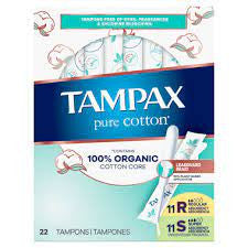 Tampax Pure Cotton contains a 100% Organic Cotton Core with a LeakGuard Braid and a 90% plant-based plastic applicator for incredible period protection and comfort. Tampax Pure Cotton, which contains a 100% Organic Cotton Core. Free of dyes, fragrances, and chlorine bleaching, Tampax Pure Cotton tampons provide you with protection you can feel good about.
