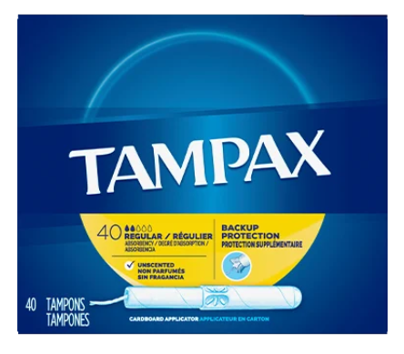 Tampax Unscented Tampons with Backup Protection - Regular | 40 Tampons
