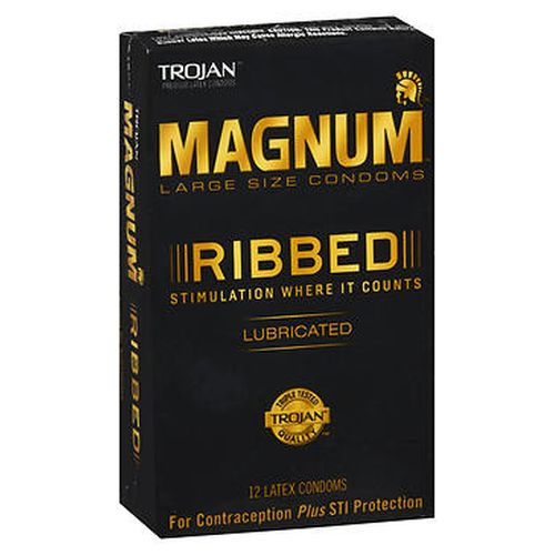 Trojan Magnum Large Size Latex Condoms Ribbed Lubricated 12 Each by Trojan