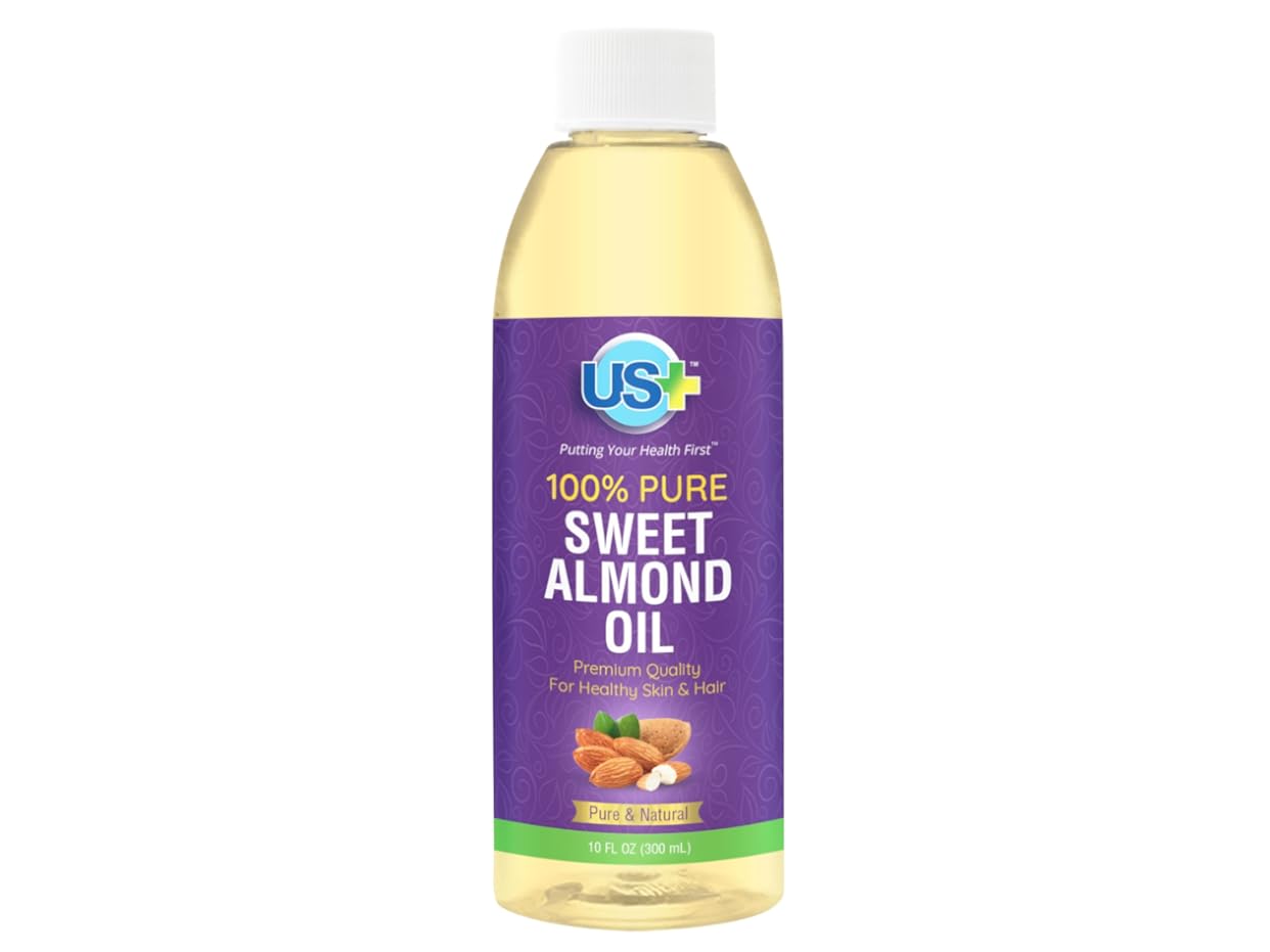 US+ 10oz 100% Pure Sweet Almond Oil - Expeller-pressed, Unrefined, Hexane-free - Premium Quality for Healthy Skin & Hair